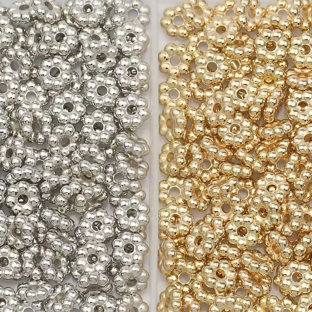 200 Pcs 6mm Snowflake Gold/Silver Plated CCB Spacer Loose Beads DIY Set Box For Bracelet Necklace Jewelry Accessories