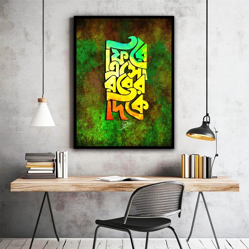ফিরে এসো রবের দিকে বাংলা ক্যালিগ্রাফি ওয়াল আর্ট | ইসলামিক নির্দেশনা সজ্জা | আধ্যাত্মিক আমন্ত্রণ ফ্রেম
