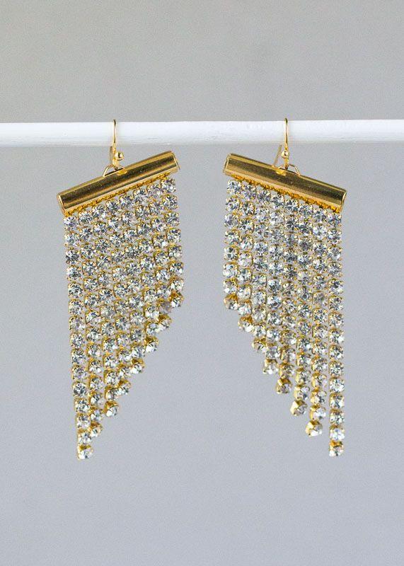 - Gold-toned bar with cascading rhinestone strands