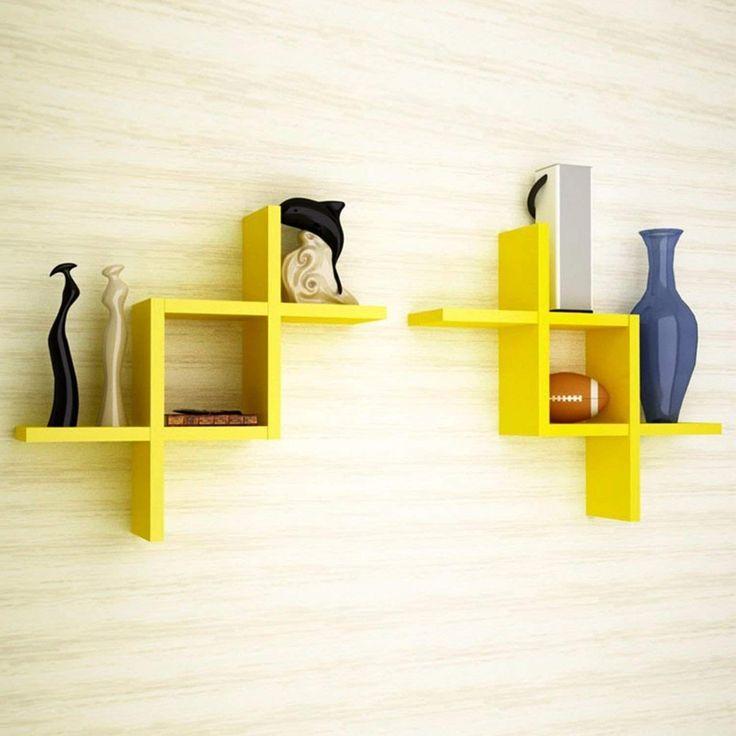 shelf, wall, yellow, geometric, modern, decor, display, storage, artistic, stylish, wooden, bold, abstract, interior, creative